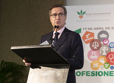 Durante su intervención, el Presidente de Unión Interprofesional de la Comunidad de Madrid resaltó que “los colegios profesionales garantizan la buena praxis y trabajan para acabar con el intrusismo laboral. Además, son “aliados” de la Administración pública para impulsar la economía y la educación”. Así como que “aportan un valor social y económico al país en que vivimos, que es un factor de estabilidad".