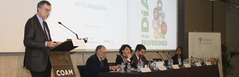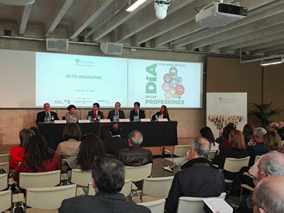 Inauguración: En la apertura de este Día, colegiados de reconocido prestigio - la arquitecta Izaskun Chinchilla, el psicólogo Javier Urra, la trabajadora social Gema Gallardo y el químico Bernando Herradón- pusieron en valor la labor que cada uno de sus colegios profesionales realizan tanto por sus propios colegiados – incluyéndose ellos mismos como tales- como por el conjunto de la sociedad, además de exponer brevemente sus propias vocaciones y desarrollos profesionales, coincidiendo todos en la necesidad de impulsar la igualdad entre hombres y mujeres en las diferentes profesiones, así como en la importancia de incorporar el carácter social y multidisciplinar en todas ellas.