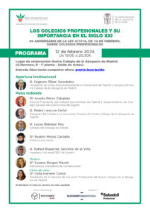 Con motivo del  50 aniversario de la Ley 2/1974, de 13 de febrero, sobre Colegios Profesionales, Unión Interprofesional en colaboración con el Ilustre Colegio de la Abogacía de Madrid, celebrará una jornada sobre Los Colegios Profesionales y su importancia en el siglo XXI, que tendrá lugar el próximo, 12 de febrero, de 19.00 a 20.30h, en el Salón de Actos del Ilustre Colegio de la Abogacía de Madrid (C/ Serrano, 9 – 1ª planta).