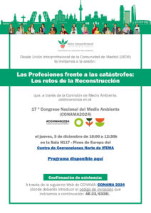 EL PRÓXIMO 5 DE DICIEMBRE UNIÓN INTERPROFESIONAL ESTARÁ PRESENTE 17º CONGRESO NACIONAL DEL MEDIO AMBIENTE (CONAMA2024) A TRAVÉS DE LA ACTIVIDAD ESPECIAL “LAS PROFESIONES FRENTE A LAS CATÁSTROFES: LOS RETOS DE LA RECONSTRUCCIÓN (AE23)”