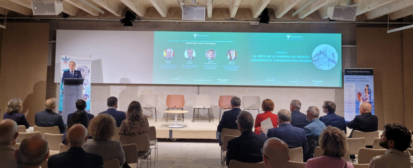 El pasado 28 de abril, Unión Interprofesional de la Comunidad de Madrid (UICM) celebró, en el Colegio Oficial de Arquitectos de Madrid, la jornada ‘El reto de la vivienda en España: diagnóstico y posibles soluciones’, organizada, a través de su Comisión del Sector Inmobiliario y Urbanismo, con el ánimo de estar presentes y abordar de una manera transversal los problemas que preocupan a la ciudadanía y de aportar un análisis técnico y propuestas realistas a un problema de primer orden, contando con especialistas del ámbito público y privado que ofrecieron una amplia visión, técnica y completa desde distintas perspectivas.