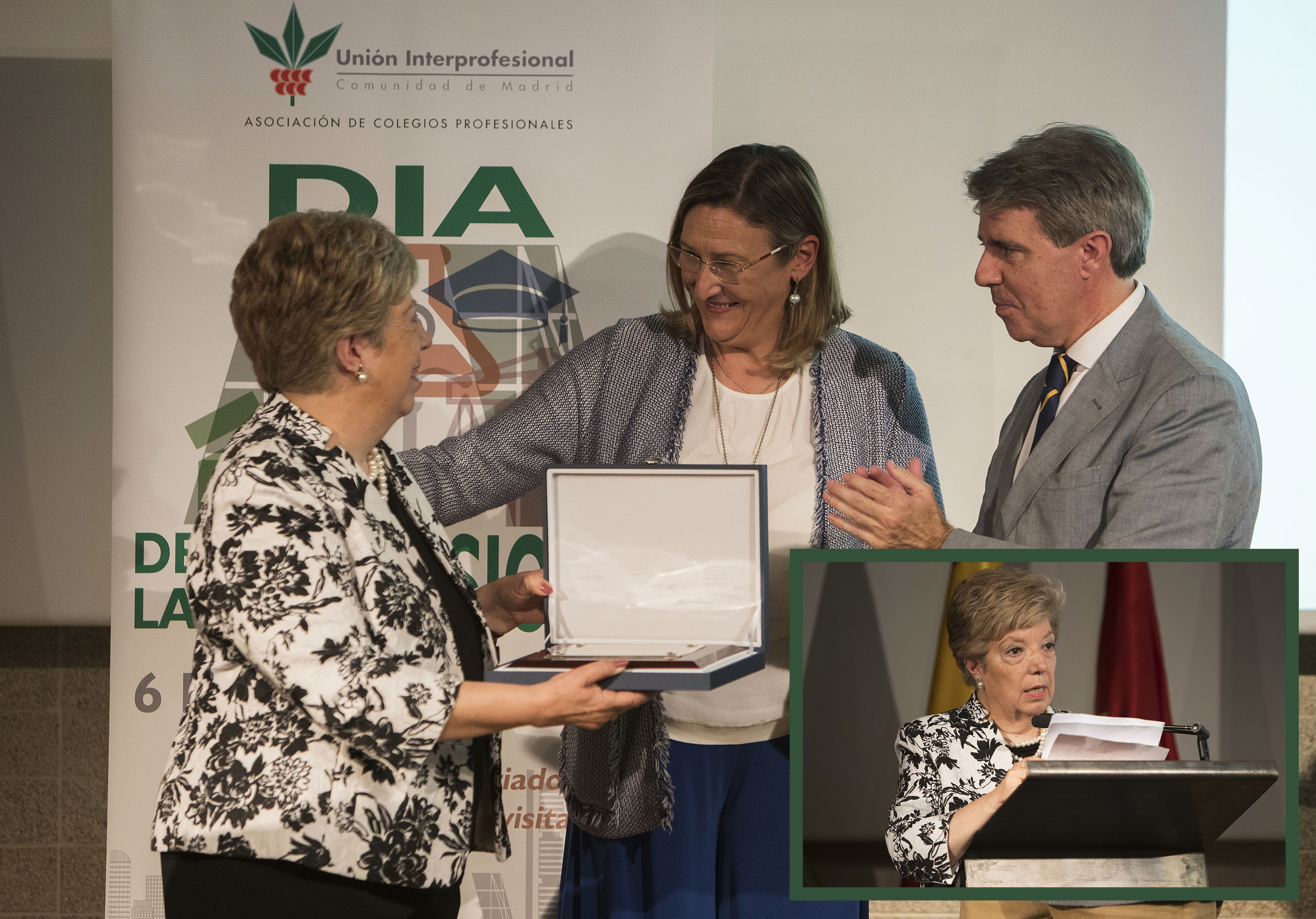Seguidamente, se entregó el II Premio UICM a la decana del Colegio Oficial de Ingenieros Agrónomos de Centro y Canarias, María Cruz Díaz Álvarez, por defender y difundir la labor que realizan los colegios profesionales y, concretamente, por impulsar la figura de la mujer en un mundo donde mayoritariamente hay hombres, tal como señaló la presidenta de UICM en sus emotivas palabras sobre la galardonada. Por su parte, la premiada mostró su satisfacción al recoger el galardón y reconoció, una vez más, el papel que juegan las profesiones en el conjunto de la sociedad.