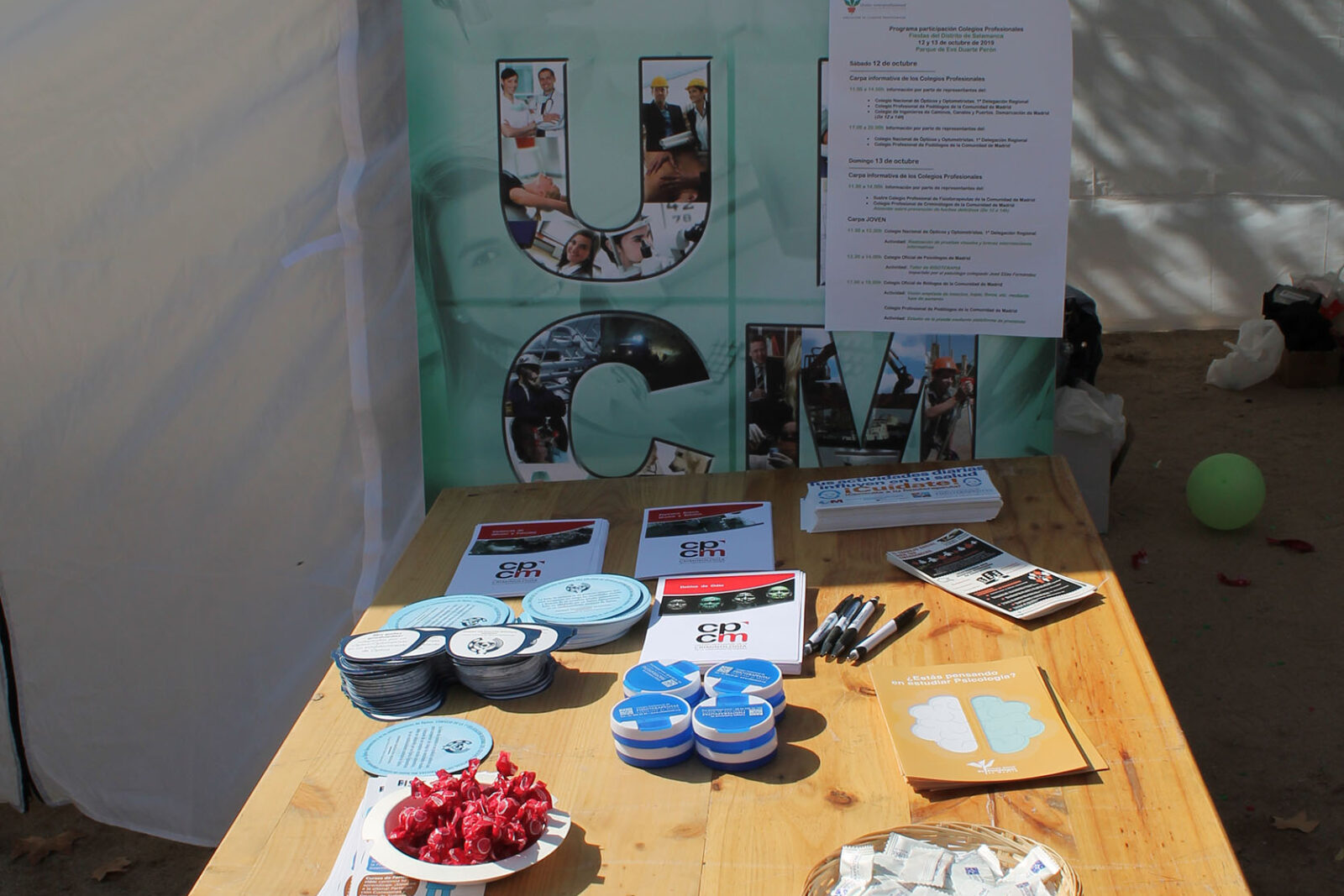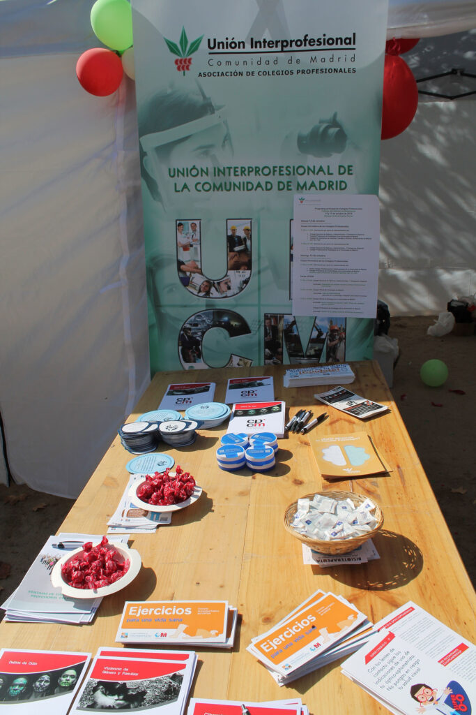 Durante el sábado 12 y el domingo 13 de octubre los Colegios Profesionales presentes en el evento ofrecieron, desde la carpa de UICM, información a los ciudadanos acerca de las distintas profesiones y de la labor que se realiza desde estas Corporaciones con gran aceptación por parte del público asistente.