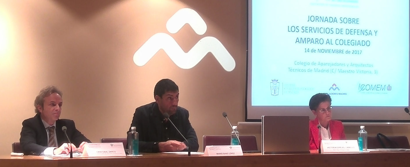 El Colegio de Aparejadores y Arquitectos Técnicos de Madrid acogió el pasado 14 de noviembre de 2017, esta jornada, organizada por UICM, a través de la Comisión de Prevención de Riesgos Laborales, con la colaboración del Colegio de Aparejadores y Arquitectos Técnicos de Madrid, el Ilustre Colegio de Médicos de Madrid y del Ilustre Colegio de Abogados de Madrid, en la que se dieron a conocer los servicios de defensa o amparo al colegiado de los que disponen algunos Colegios Profesionales, con el fin de poner en común sus experiencias con otros Colegios que no disponen de dichos servicios y unir sinergias.