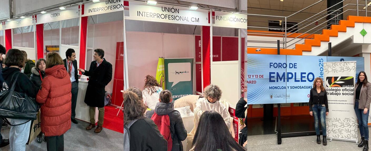En esta ocasión, a través del stand de esta Unión, han participado en el Foro de Empleo los Colegios de Ciencia Política, Sociología, Relaciones Internacionales y Administración Pública, Economistas y Trabajo Social, en el Campus de Somosaguas, y los Colegios de Abogacía, Dietistas-Nutricionistas, Farmacéuticos, Logopedas, Notarios, Registradores, Terapeutas Ocupacionales y Veterinarios en el Campus de Ciudad Universitaria.